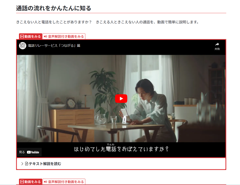 - 聴覚や発話に困難のある人と、聴覚障害等以外の人、双方が利用するサービスであることを、ウェブサイト訪問者に対して明確に伝えるデザインになっていない。